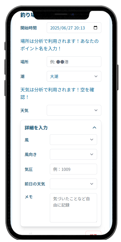 釣果を記録していくとあなたの釣れるパターンがわかるかも!?